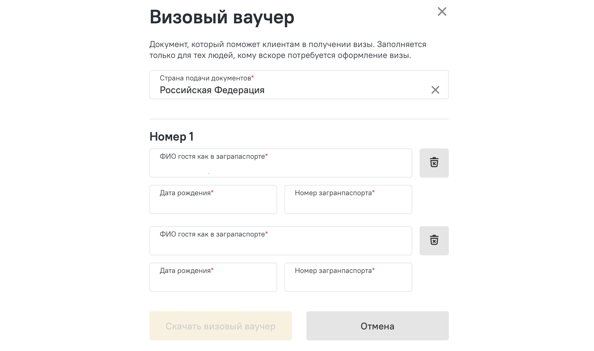 Визовый ваучер — это документ на фирменном бланке с подписью и печатью компании. В нём указывают паспортные данные гостя, даты пребывания в стране, а также название и адрес забронированного объекта размещения. Такой ваучер иногда запрашивают консульства и визовые центры для оформления визы.