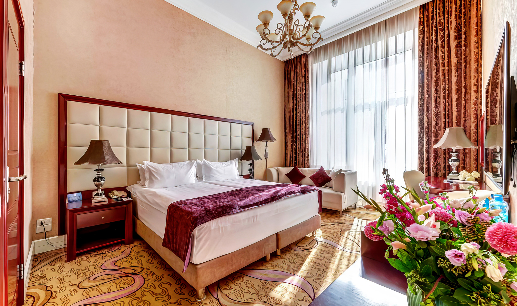 Отель «четыре звезды» в особняке, построенном в стиле модерн в начале XX века. В пешей доступности — Московский вокзал, что особенно порадует тех, кто приезжает из столицы на «Сапсане».