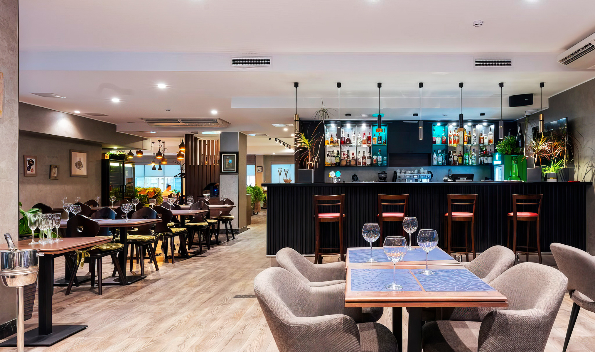 Два конференц-зала вмещают до 200 человек каждый и оснащены современным оборудованием и скоростным Wi-Fi. Для деловых встреч можно забронировать переговорную комнату или столик в двухуровневом ресторане «Костас».