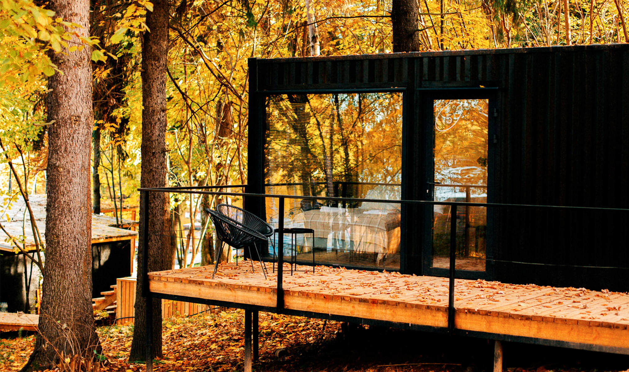После мероприятия можно остановиться в стильных домиках, некогда использовавшихся для морской перевозки груза. Домики тёплые, интерьер в духе скандинавского минимализма. Есть парковка, Wi-Fi, площадка для пикника и барбекю, коворкинг, развлечения в виде настольных игр и кинопроектора.