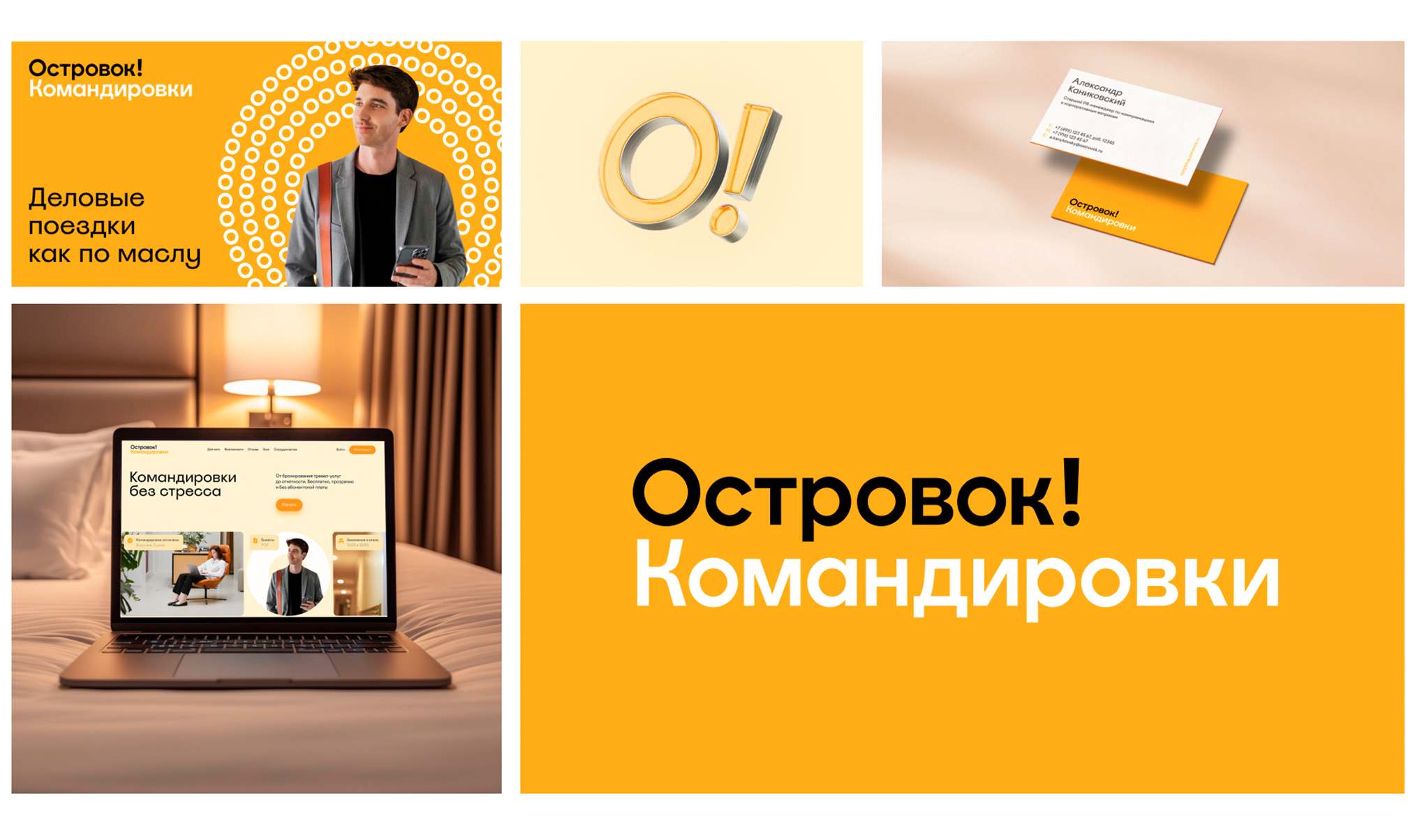 Ну и к главному событию года: в 2024-м сервис полностью изменил свой визуальный облик: сменил название на кириллический вариант Островок Командировки и перешёл на солнечно-оранжевую цветовую палитру с добавлением светлой охры. Основным акцентом на всех изображениях стала буква «О», которая играет на моментальное узнавание: О — значит Островок!