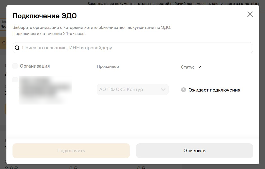 Укажите ИНН компании и нажмите «Подключить». Если юридических лиц несколько, необходимо подключить каждого контрагента.