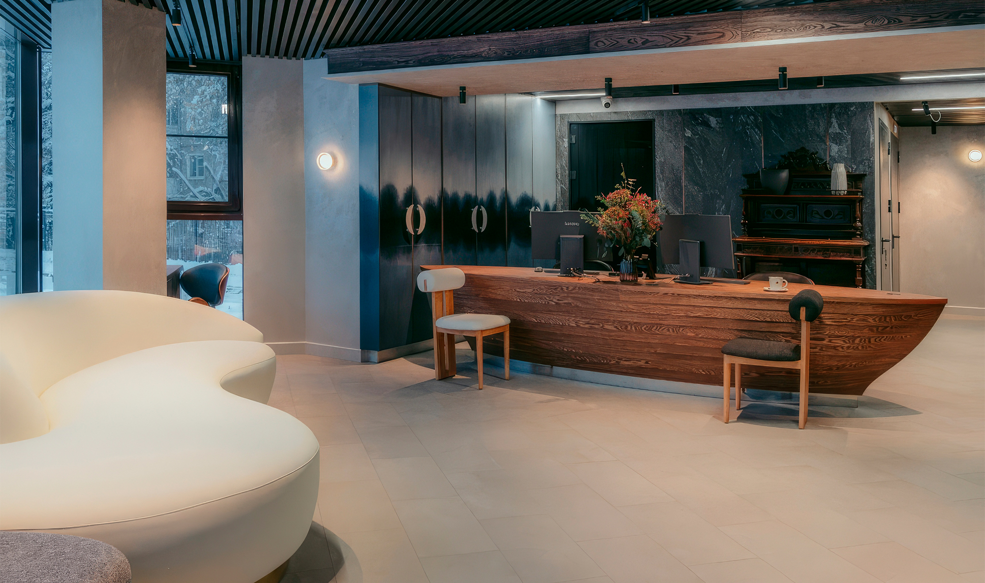 Связь с природой отражена в дизайне: в отделке интерьеров использованы натуральные материалы и природные фактуры, а палитра повторяет оттенки Байкала.