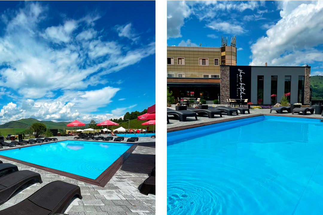 В комплексе пять бассейнов с подогревом, в которых проводят пенные вечеринки под диджей-сеты. Открыт спа-центр, где можно записаться не только на привычный массаж, но и на пантовые ванны и обёртывания — процедуры на основе экстракта из вываренных рогов марала.