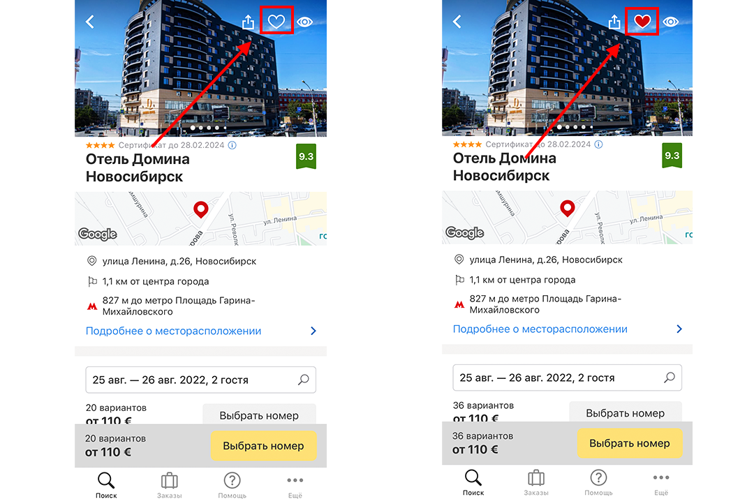 Кстати, о разделе «Избранное» — используйте его, чтобы отметить подходящие отели, а потом вернуться к приглянувшимся вариантам в любое время с любого девайса.