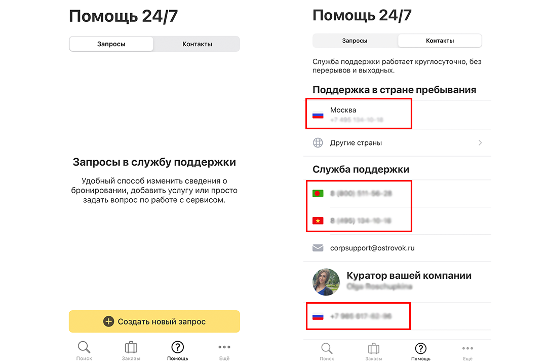 Иногда вопрос по бронированию приходит, когда вы отошли от компьютера. Зато телефон всегда рядом — в приложении можно не только посмотреть контакты, но и сразу связаться с поддержкой.