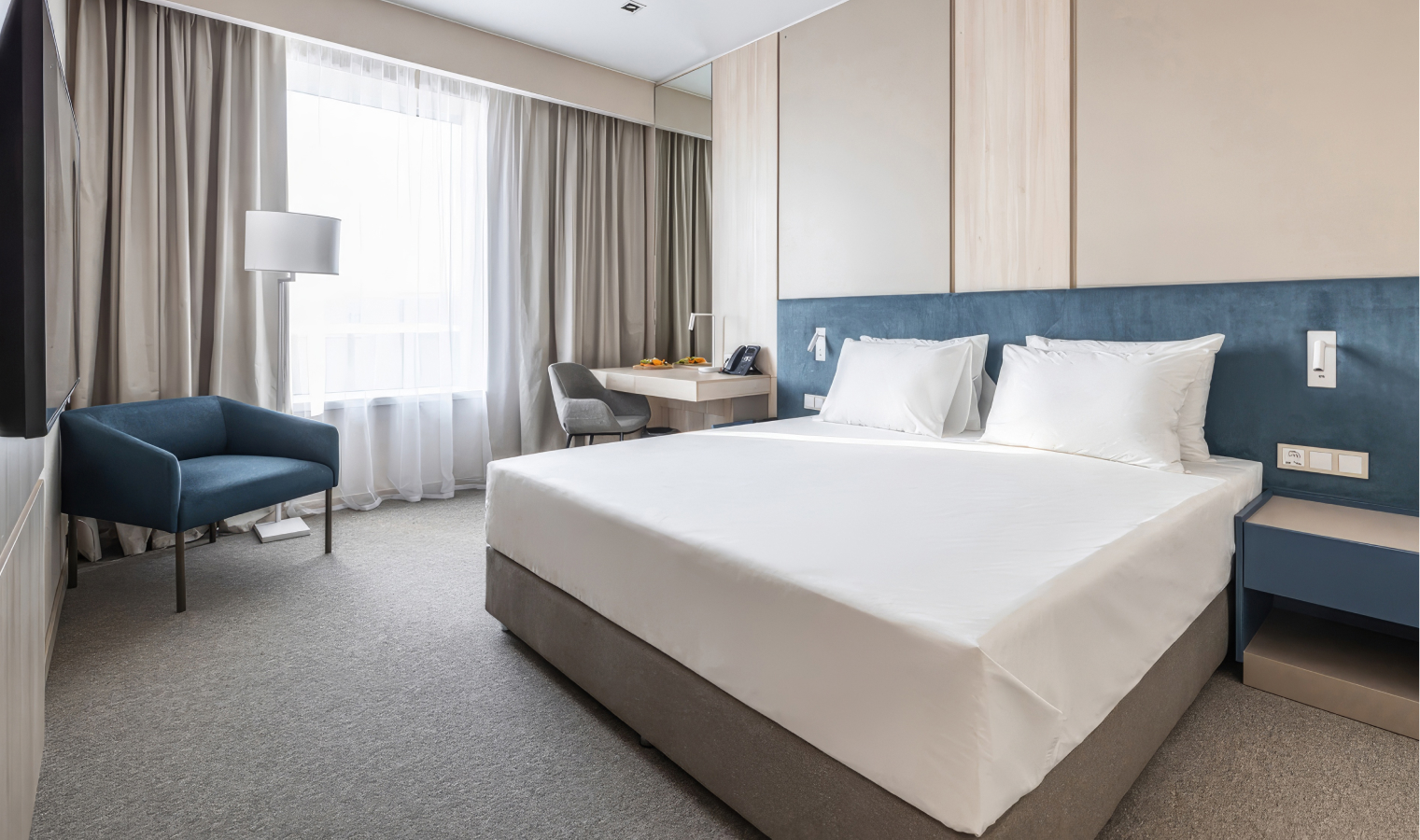 Отель на территории аэропорта Кольцово. Супериор, делюкс, люкс, люкс супериор — такие варианты проживания предлагают постояльцам. Просторные номера, современные интерьеры, удобные кровати, звуконепроницаемые окна и блэкаут-шторы создают комфорт для отдыха.