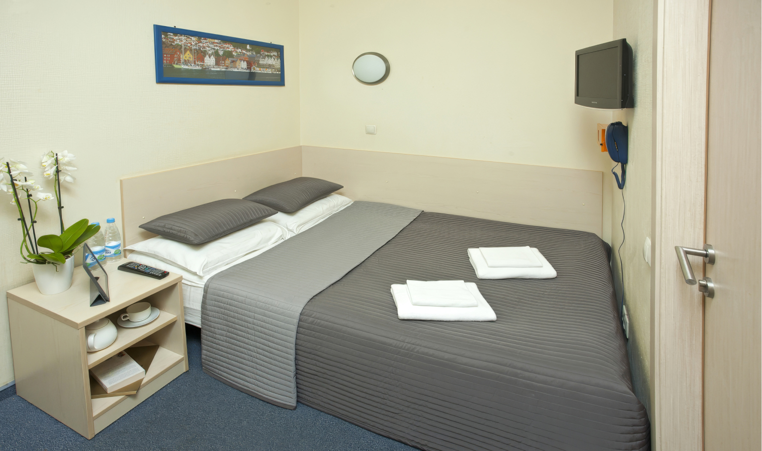 Вариант в тихом районе Санкт-Петербурга, всего в 15 минутах езды от аэропорта Пулково. Гостям предлагают стандартные номера экономкласса, а также варианты проживания первой и высшей категории. В номерах есть кресла, письменный и журнальный столы, ЖК-телевизор и холодильник.