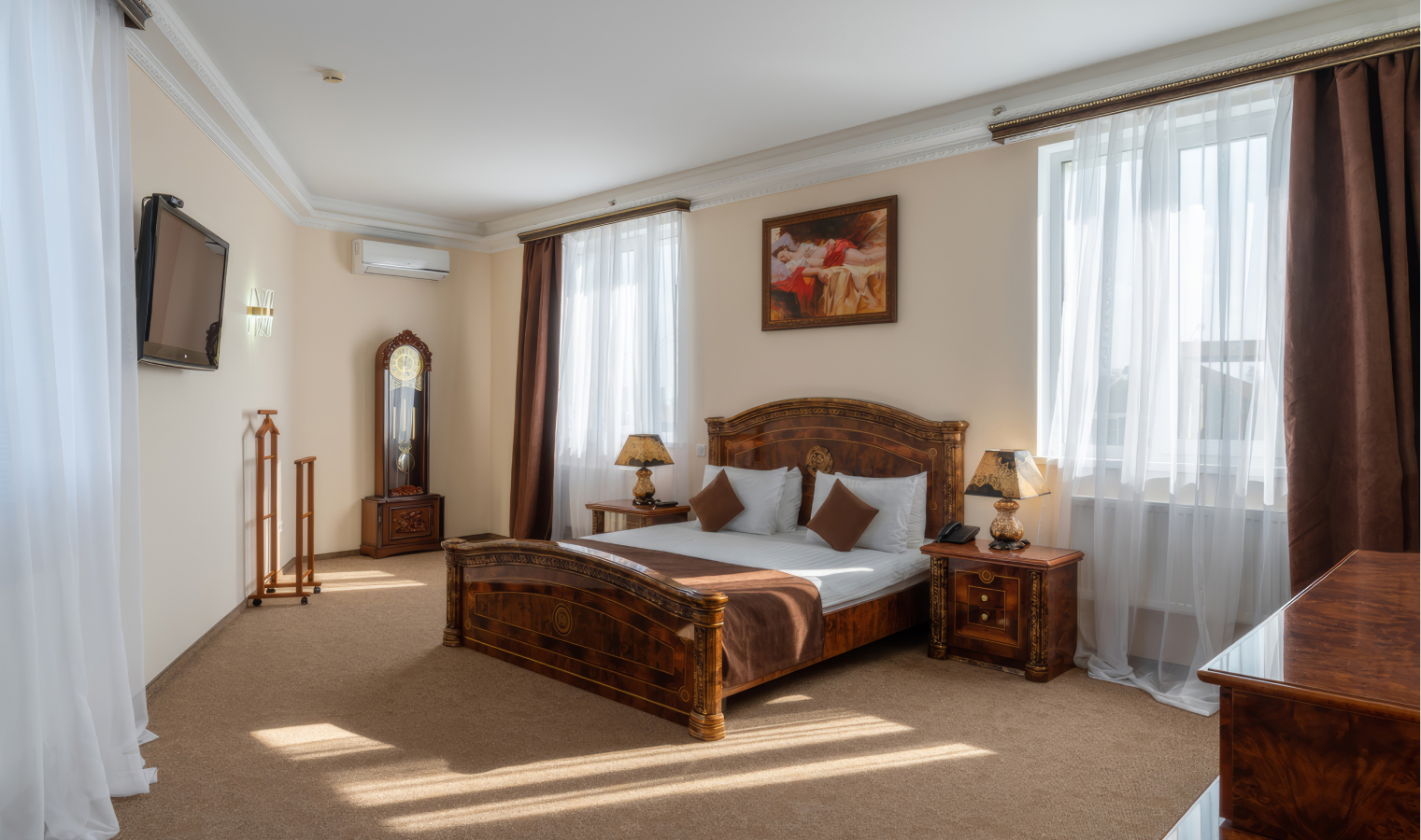 В номерах категорий стандарт, джуниор сьют и люкс — кровати с ортопедическими матрасами, бесплатный вайфай и индивидуальная система кондиционирования.