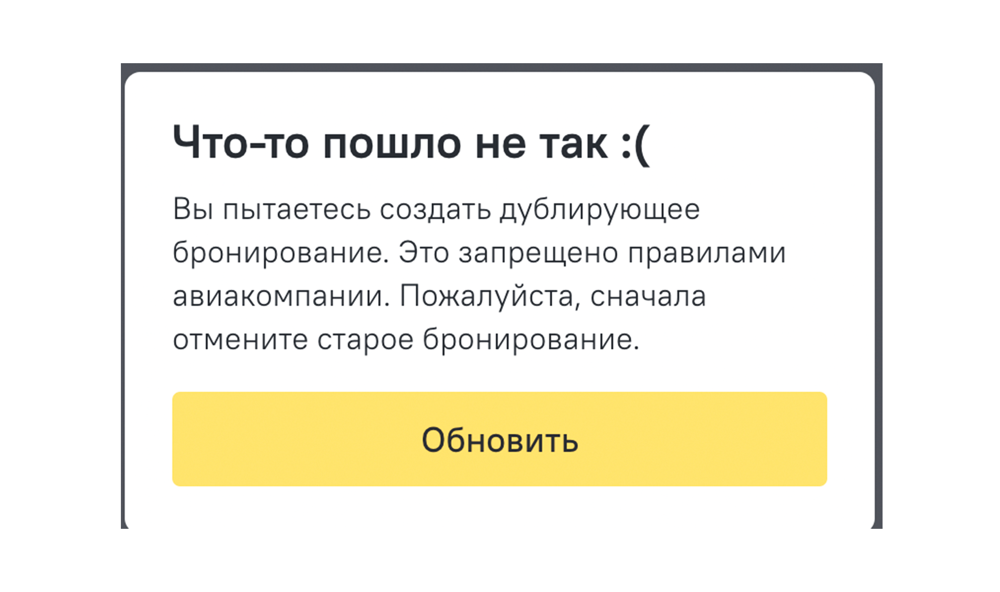 Ошибки при бронировании могут возникнуть в самый неподходящий момент! Например, когда во время оформления резко изменилось количество доступных билетов. Раньше в таких ситуациях мы показывали стандартный тест ошибки, теперь расшифровываем полученные данные от авиакомпании. Так вы сможете сразу понять, что пошло не так, и главное, исправить недочёт.