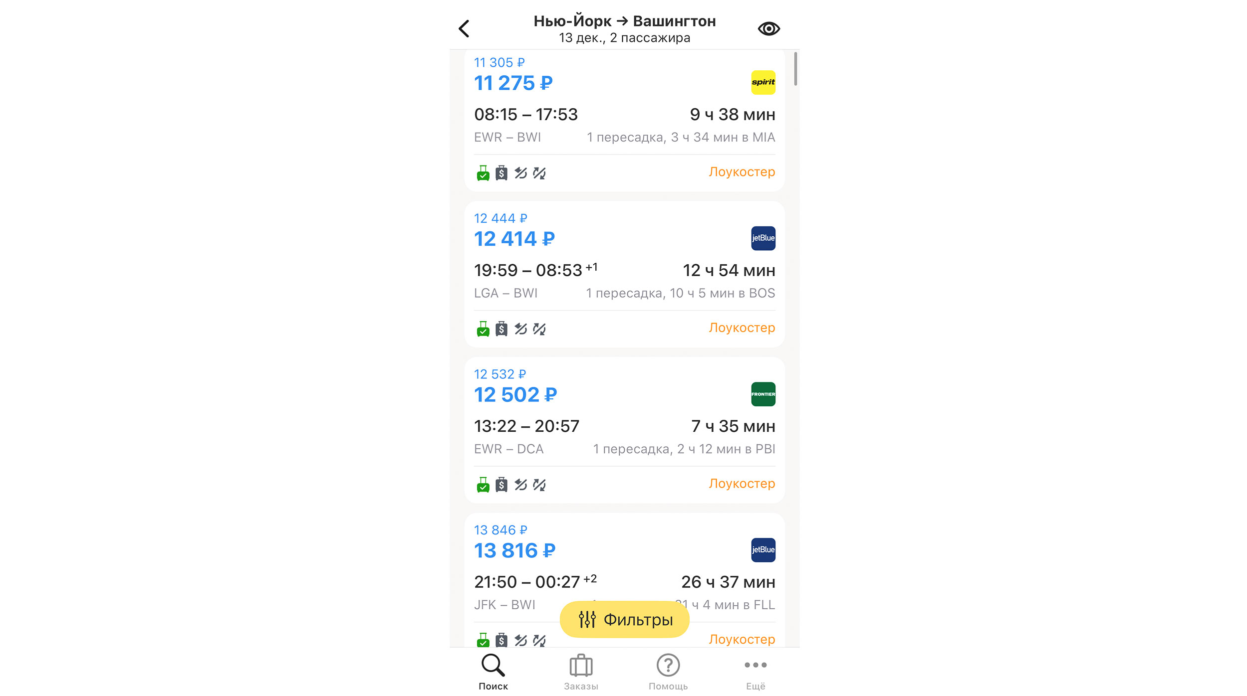 - сравнивать предложения от 350+ авиакомпаний, в том числе 200+ лоукостеров;