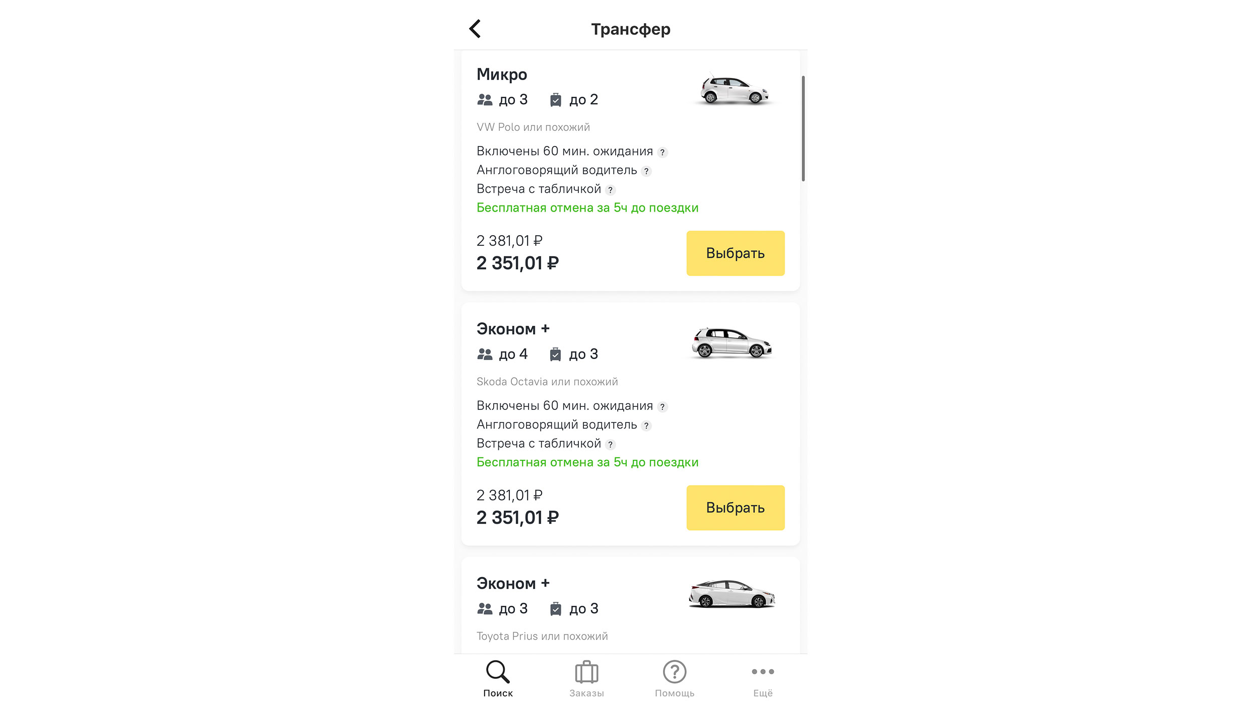 Информация по уже забронированным трансферам доступна в разделе «Заказы».