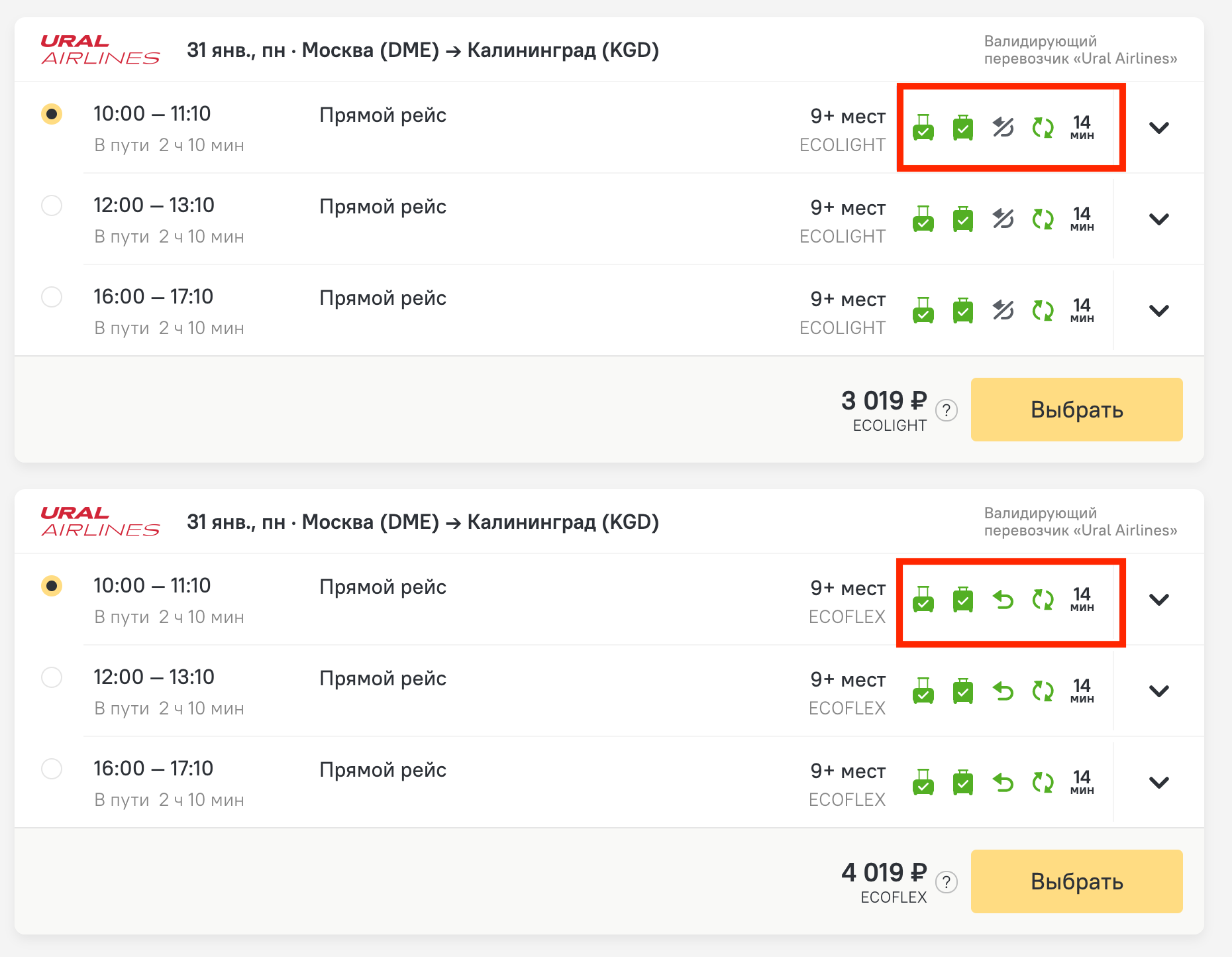 - На странице поисковой выдачи разные тарифы представлены в общей ленте в отдельных карточках, а не в одной. Чтобы быстрее найти нужный вариант тарифа (например, с багажом), пожалуйста, используйте фильтры.