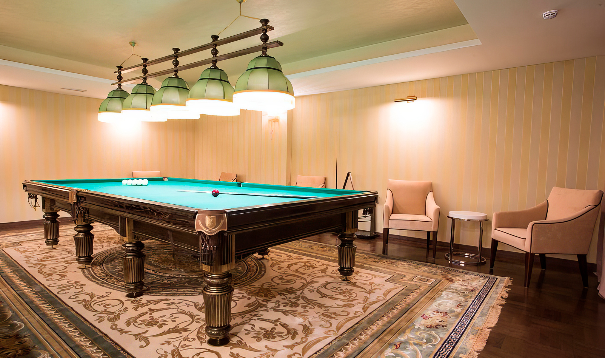 Помимо современного конференц-зала на 70 человек, здесь есть небольшая обеденная комната с бильярдным столом — это отдельное пространство для закрытых мероприятий. Среди прочих удобств — тренажёрный зал, хаммам, сауна и русская парная.
