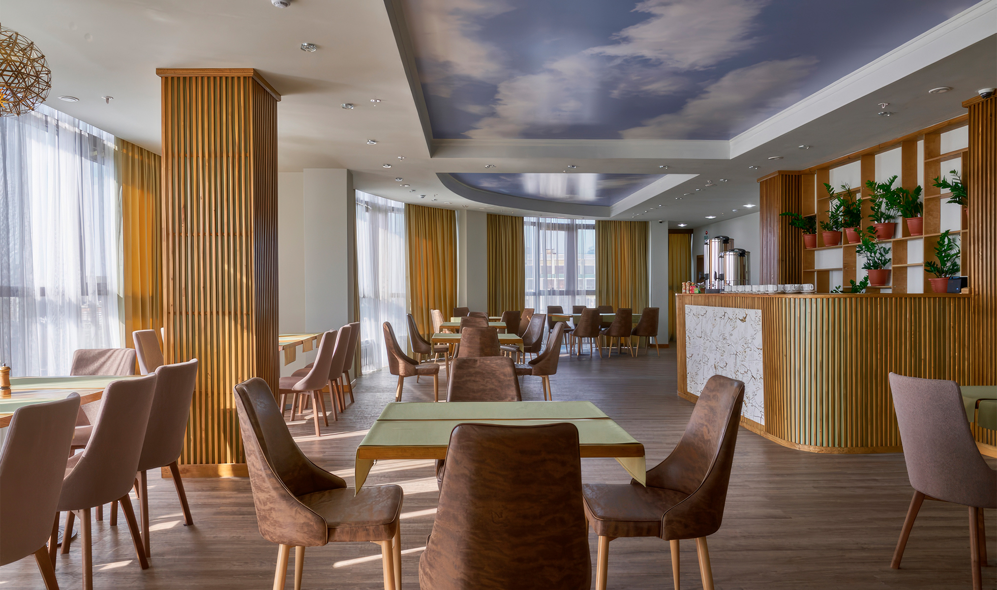 На завтраках и бранчах в ресторане «Аль-Фараби» есть и привычные круассаны, и национальные манты и казы (колбаса из конины), а в турецком Aksam гости могут попробовать османскую кухню.
