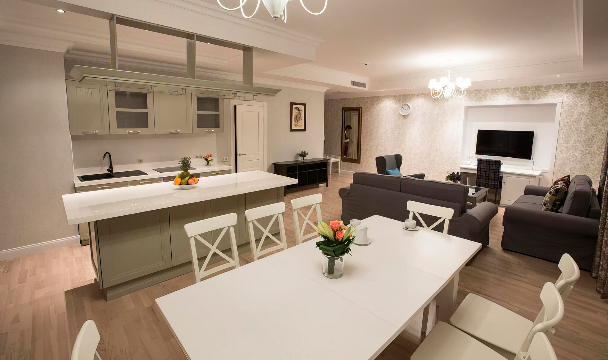 В небольшой гостинице доступны апартаменты с собственной кухней: это позволит бизнес-туристу не зависеть от расписания ресторана.