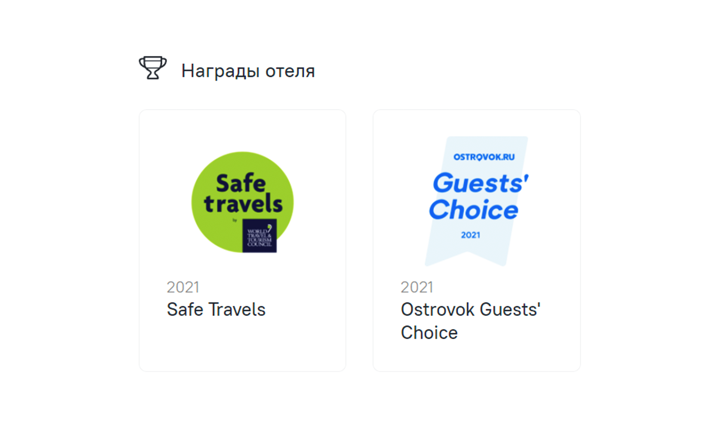 - Значок Ostrovok Guests’ Choice с указанием года также можно увидеть в разделе «Награды».