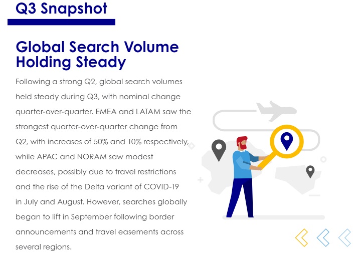 По результатам исследования, в третьем квартале 2021 года объёмы глобальных запросов в поисковых системах оставались стабильными. Некоторые изменения по сравнению с предыдущим кварталом произошли в странах Европы, Ближнего Востока, Африки и Латинской Америки — количество упоминаний этих стран в поисковых системах увеличилось на 10-50%.