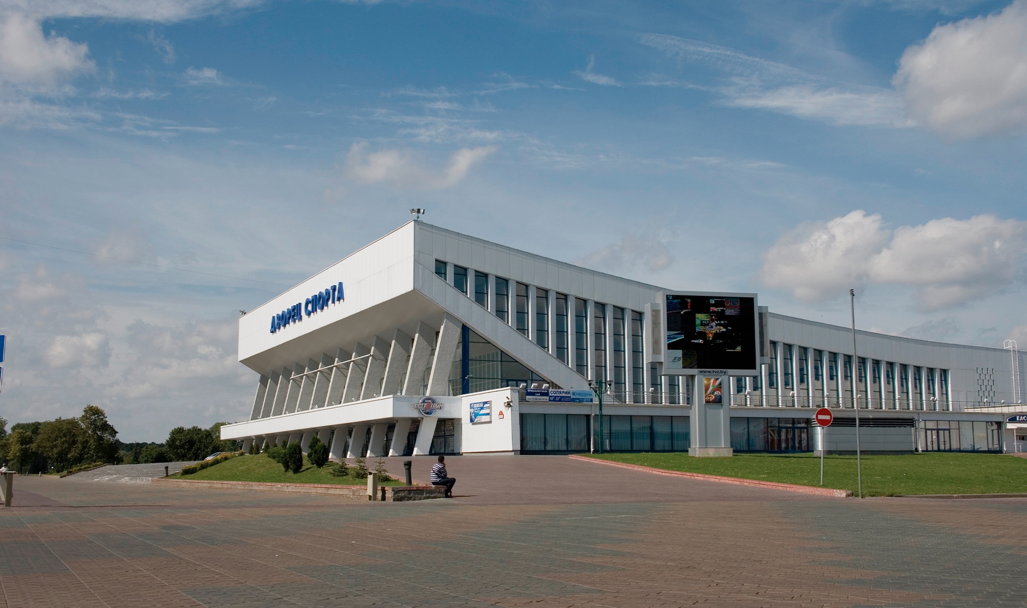Через дорогу — Дворец спорта и набережная реки Свислочь. Фото: Pavel Fiadkevich / Shutterstock.com