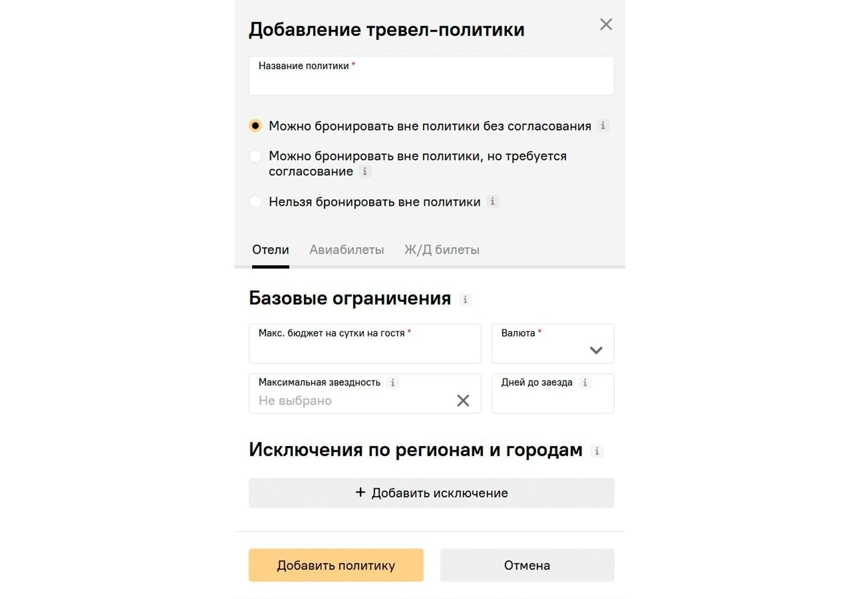 Держать расходы под контролем помогает тревел-политика, или положение о командировках. Документ регламентирует условия корпоративных поездок, например: