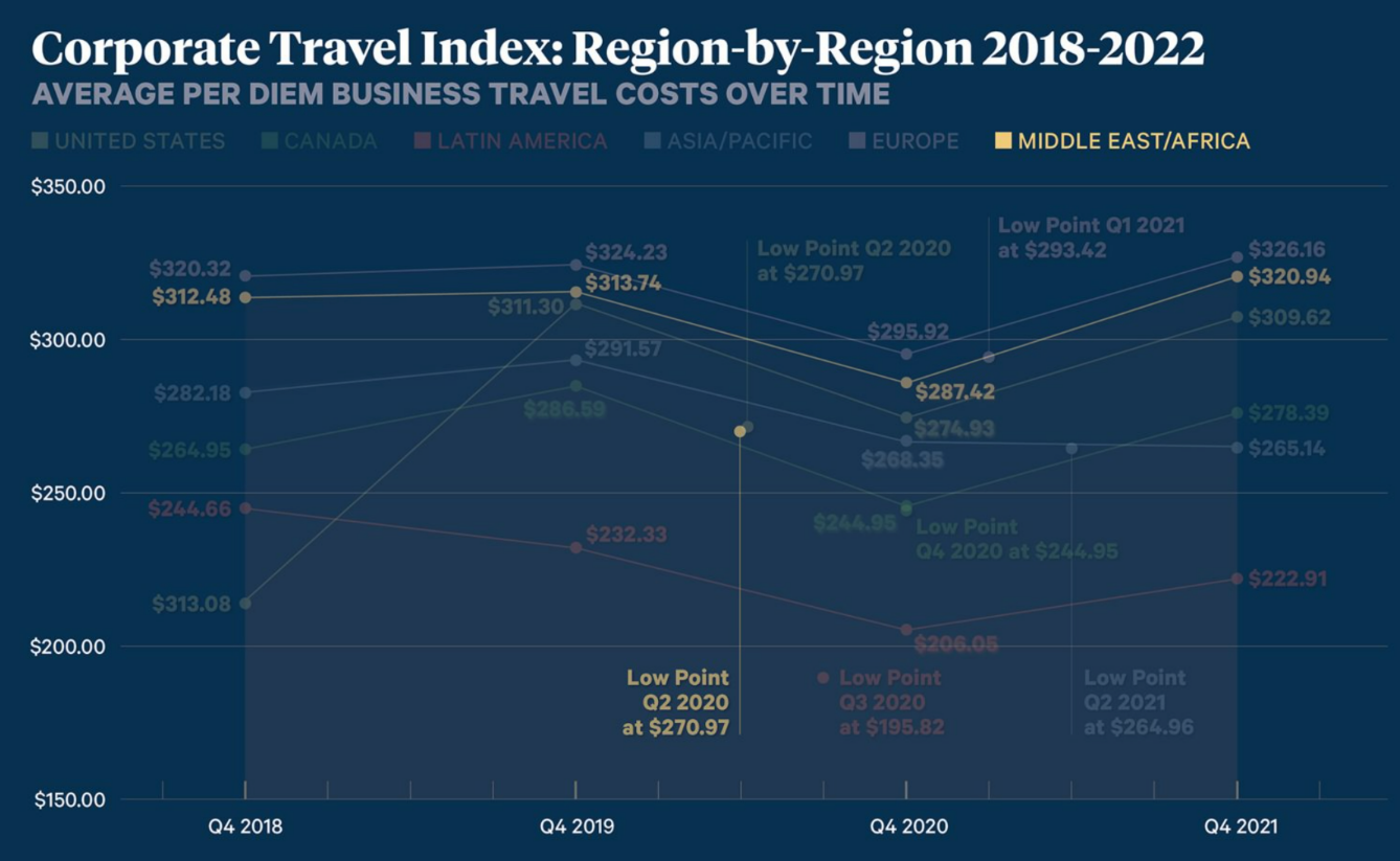 В Латинской Америке рынок делового туризма восстанавливается преимущественно за счет внутренних перемещений. Однако со второго квартала 2022 года после затухания очередной волны заболеваний постепенно стали возвращаться международные командировки внутри региона. Авторы исследования прогнозируют, что в этом году спрос на международные деловые поездки в рамках региона достигнет 70% от допандемийных показателей. На динамику восстановления рынка деловых поездок также влияет и международный туризм. С увеличением спроса на авиаперелеты наблюдается и рост цен на гостиничные услуги. Оба фактора неизбежно, но позитивно отразятся на индустрии деловых путешествий.