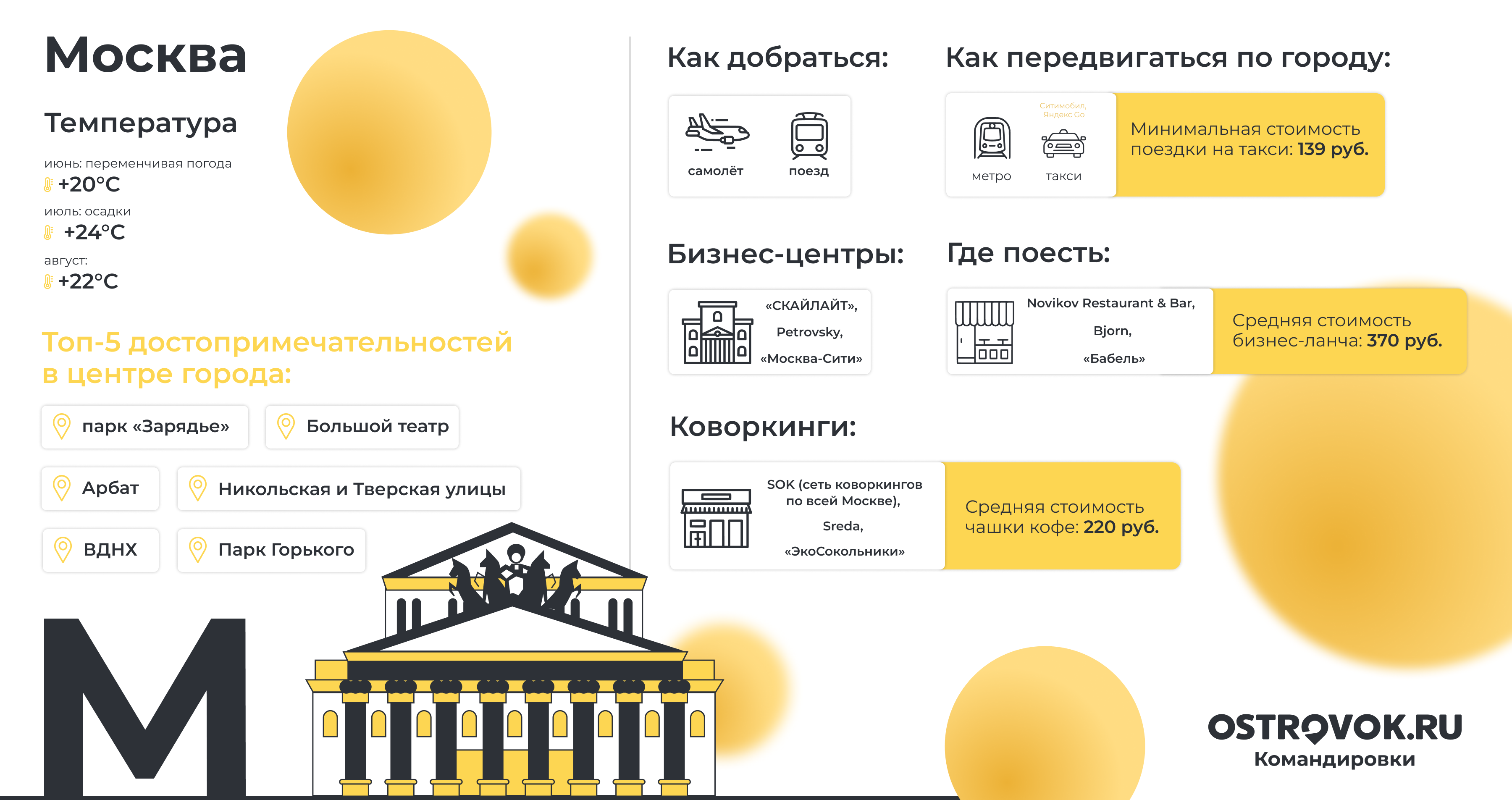 В телеграм-канале Ostrovok.ru Командировки мы регулярно публикуем такие карточки с информацией по разным городам России и мира.