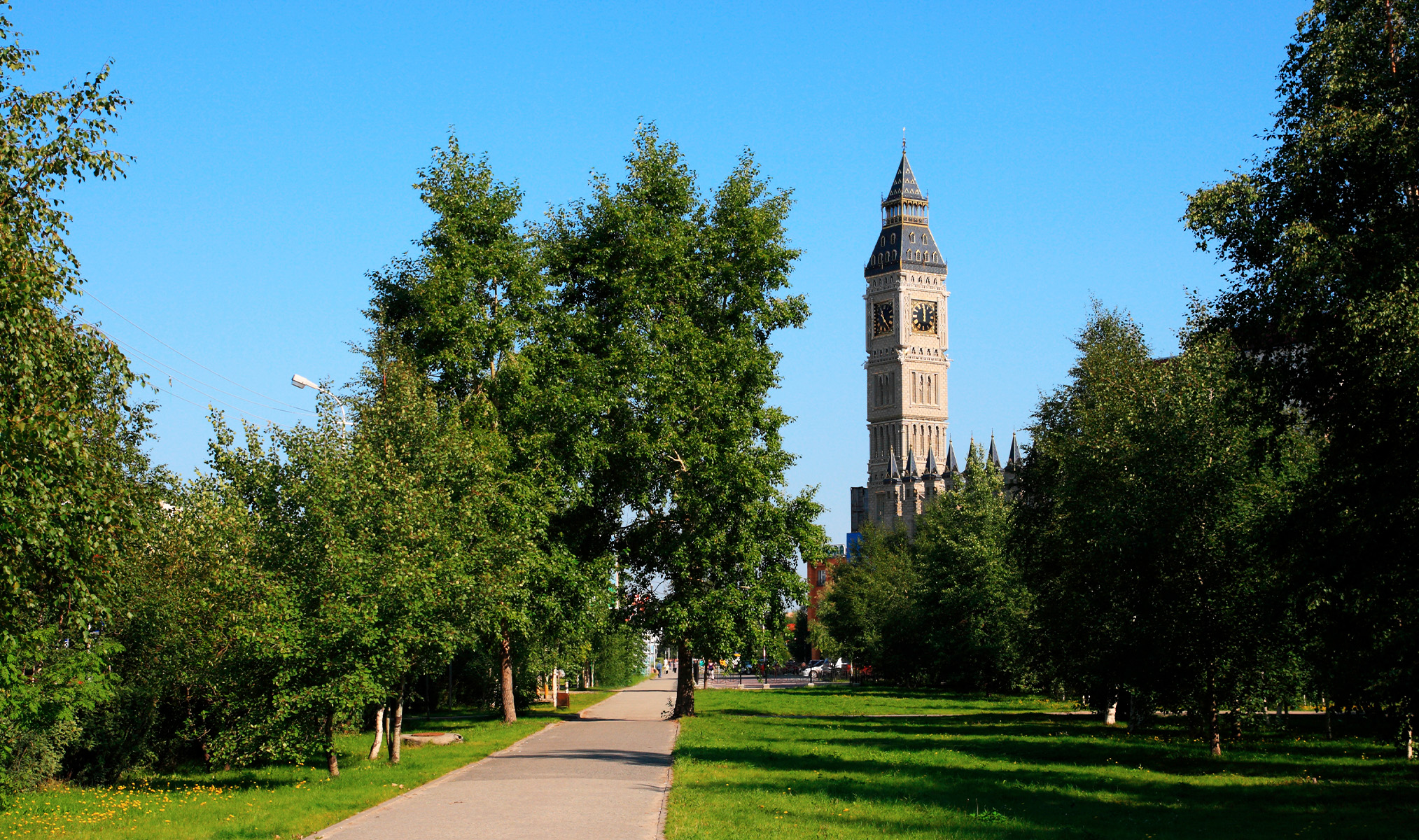 - «Сургутский Биг-Бен». Это здание школы иностранных языков практически скопировано с часовой башни в Лондоне.