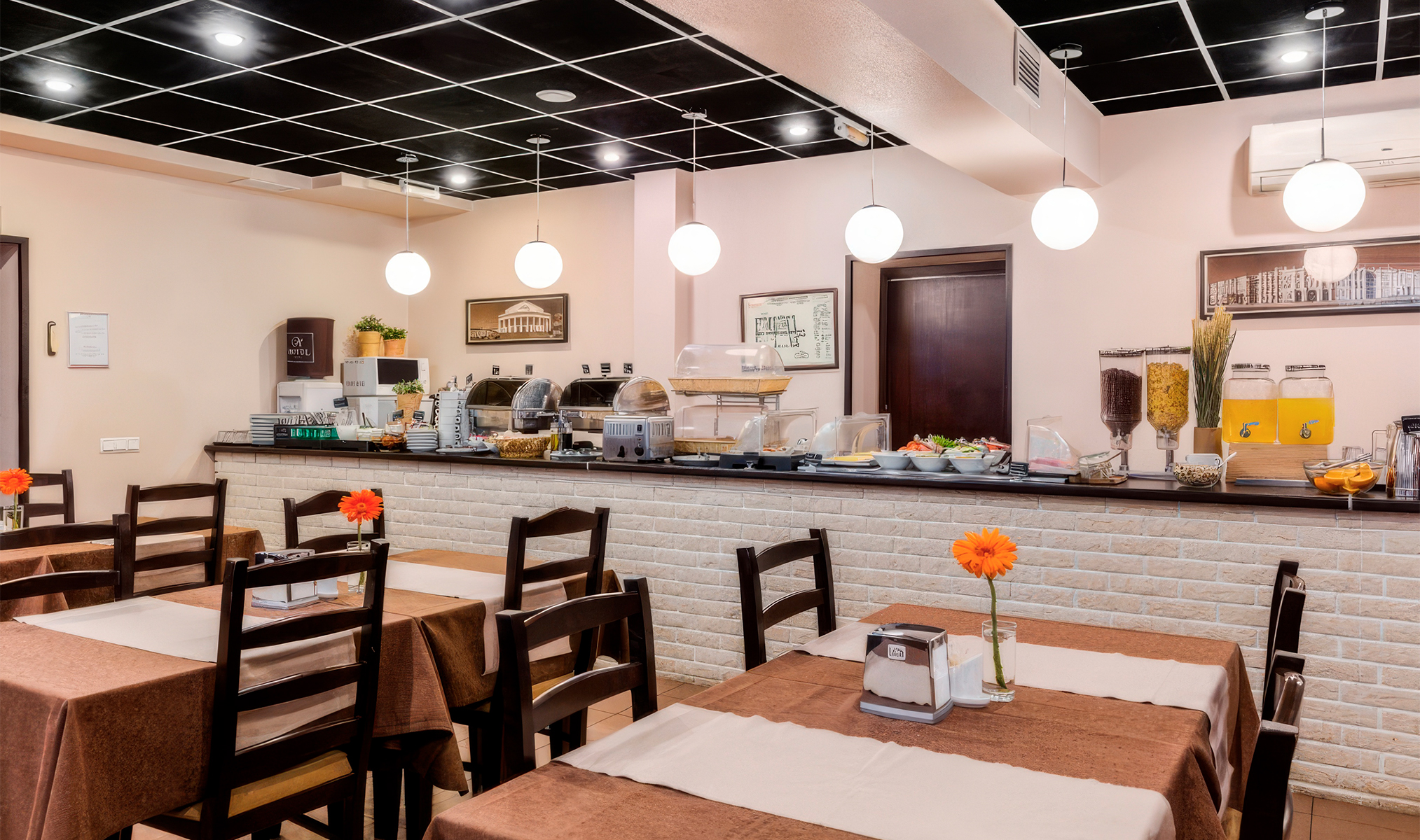 Питание. Гости могут позавтракать с 7:00 до 11:00 в одном из залов ресторана «Метрополь», который находится в том же здании, что и отель. На утреннем «шведском столе» представлены мясные и рыбные закуски, омлеты, салаты, каши, йогурты и свежие фрукты. Из напитков предлагаются традиционные чай, кофе, вода и соки, а также крепкие. Популярный выбор — бокал игристого итальянского вина или рюмочка «Царской водки». Заказ блюд по меню доступен с 12:00.