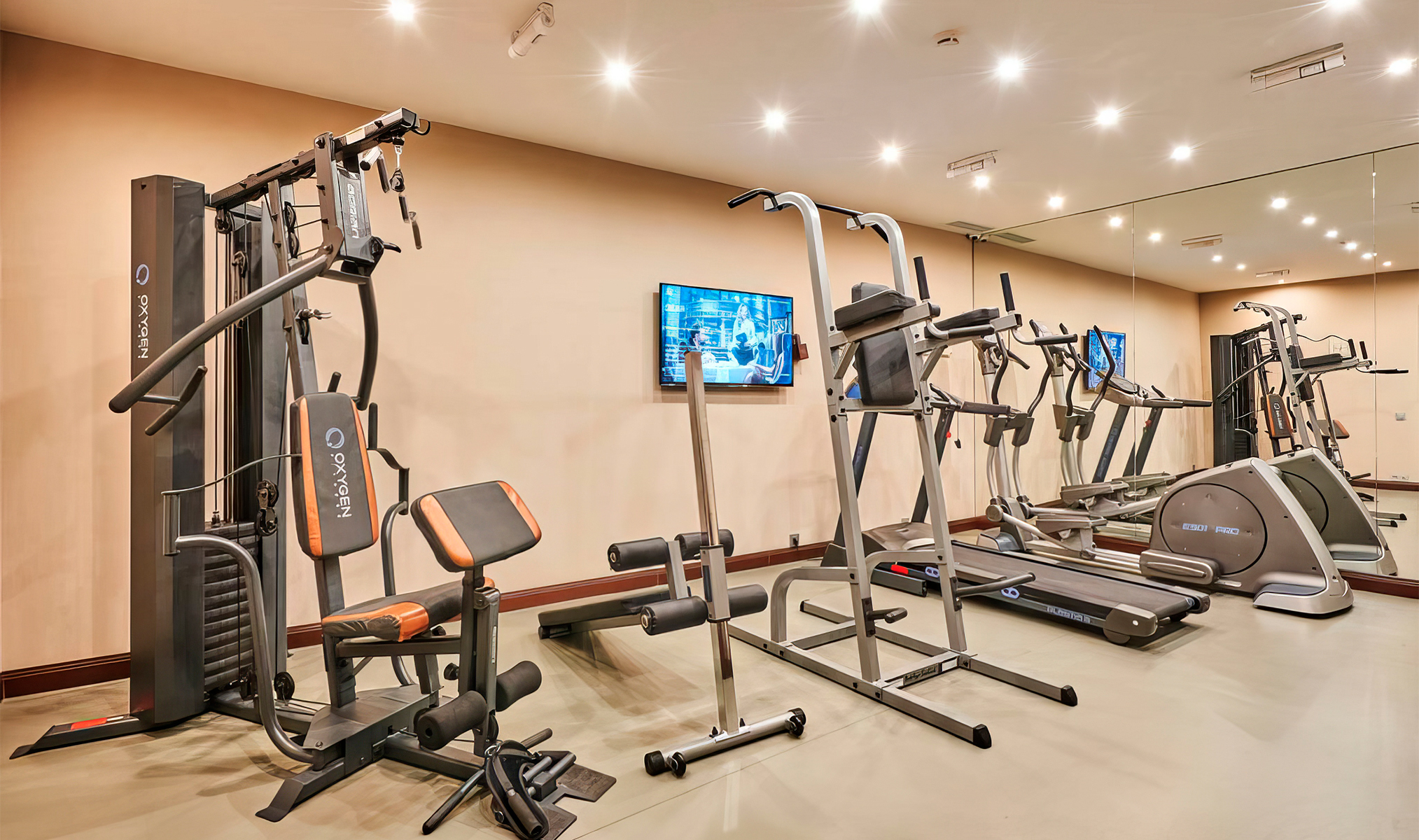 На четвёртом этаже отеля находится фитнес-зал с беговой дорожкой, тренажёрами, скамьёй для жима и свободными весами.