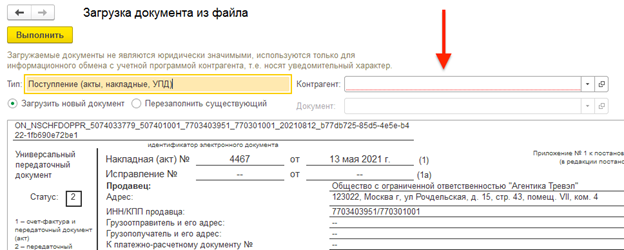 Как только новый документ загрузится, откроется специальная форма. В ней вы можете внести изменения в реквизиты перед сохранением файла в 1С.