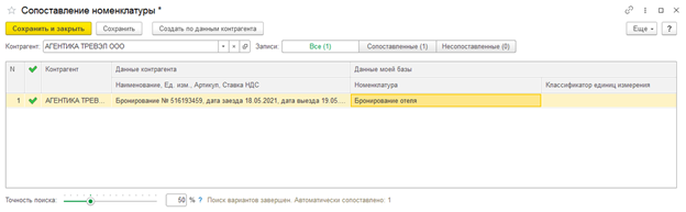 - Нажмите «Выполнить». Перед этим при необходимости можно изменить или сопоставить номенклатуру.