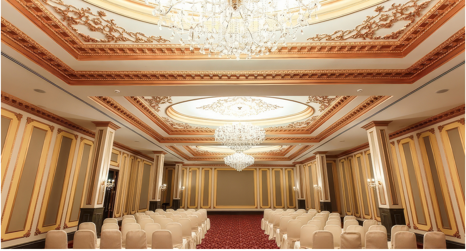 Здесь помогут организовать конференцию, семинар, презентацию, тренинг или банкет. Для этих целей подходит конференц-зал «Европейский» площадью 200 м². Он вмещает до 180 человек. О технической стороне можно не беспокоиться: для мероприятия предоставят DLP проектор, презентационное оборудование (радиомикрофон, микшерный пульт, акустическую систему, кликер, ноутбук) и высокоскоростной доступ в интернет.