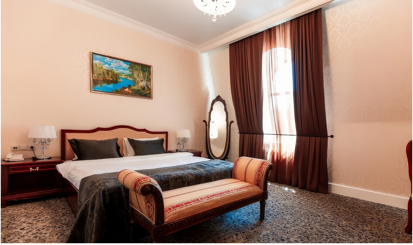 В отеле можно разместить даже большие делегации: на выбор есть 115 номеров разных категорий, от стандартной до «Люкс Премиум». Все номера оснащены кроватями King size либо двумя раздельными кроватями, рабочим местом, высокоскоростным интернетом, а также зоной для приёма гостей. В комнатах «Люкс Премиум» также есть балкон.