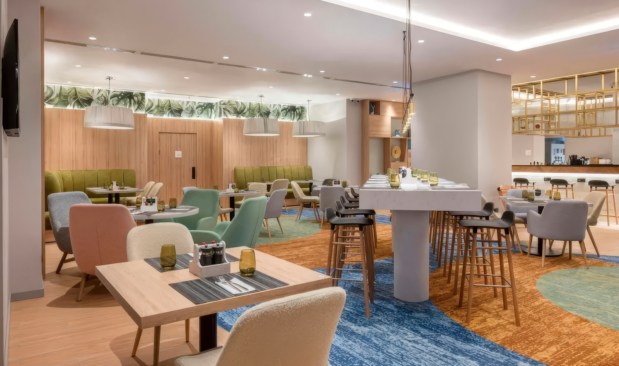 Ресторан Together & Co на третьем этаже работает с 7:00 до 23:00 и предлагает блюда международной и грузинской кухни.