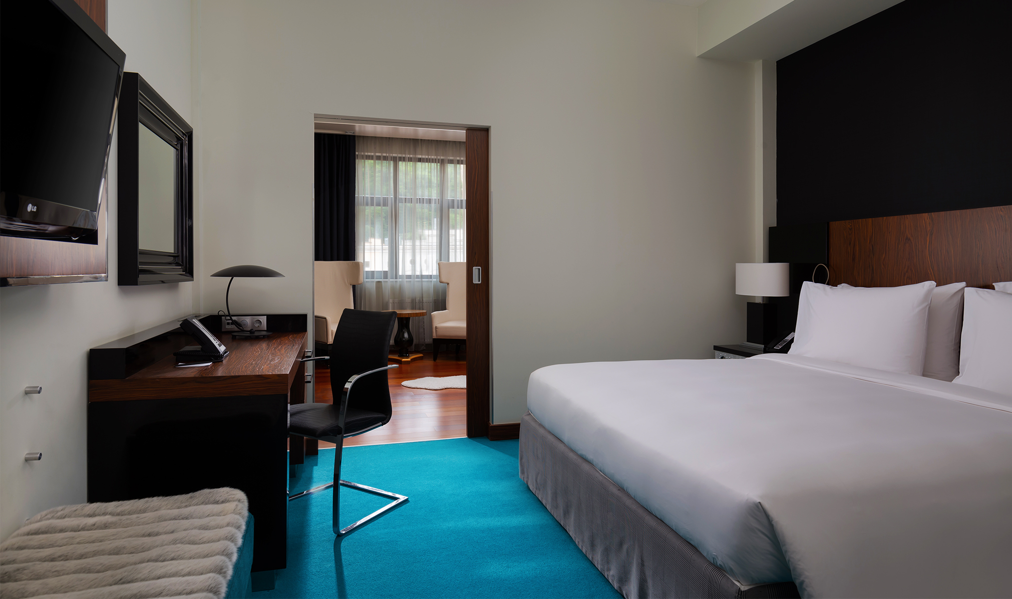 - В просторном люксе Presidential имеются отдельная гостиная и две спальни для отдыха с семьёй или друзьями.