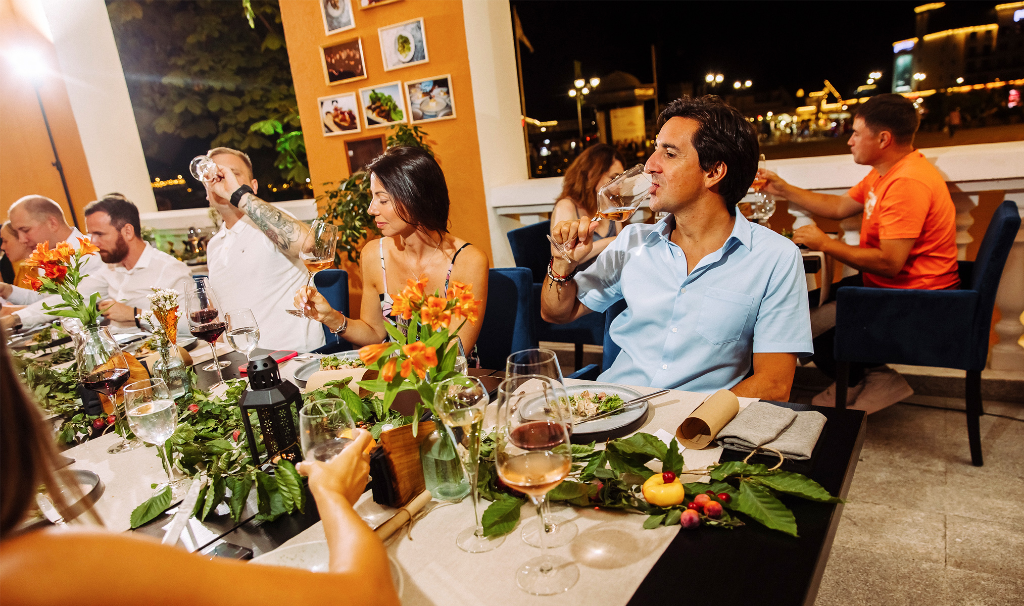 Сомелье презентует винное сопровождение к каждому блюду и рассказывает о локальных винах, секретах виноделия и винной культуре. Для тех, кто предпочитает авторские коктейли, работает шеф-бармен, который с большим удовольствием поделится секретами сочетания различных напитков.