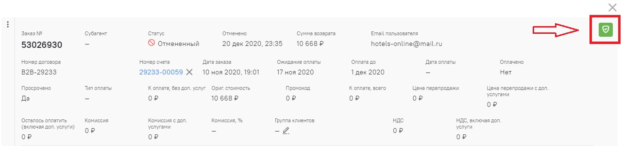 Все бронирования, оформленные на Островок Командировки, проходят через проверку службы Pre-Check. После этого в правом верхнем углу строки бронирования появляется специальный значок.
