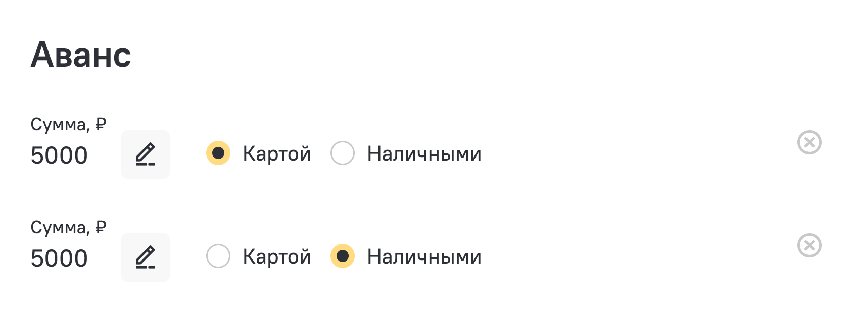 - Нажмите «Добавить аванс» в карточке сотрудника.