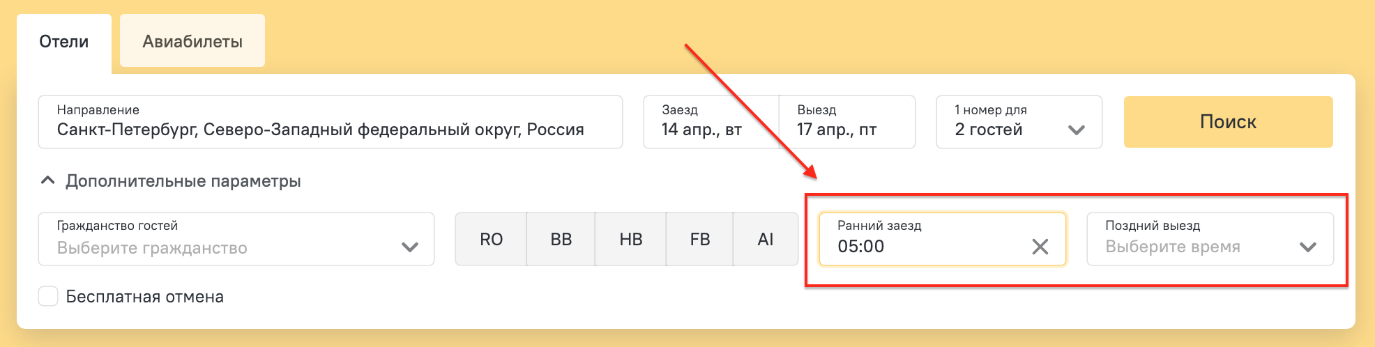 В Островок Командировки вы можете забронировать ранний заезд в отель, если ваш самолёт или поезд прибывает утром и ждать стандартного времени заселения в 14:00—15:00 не хочется.
